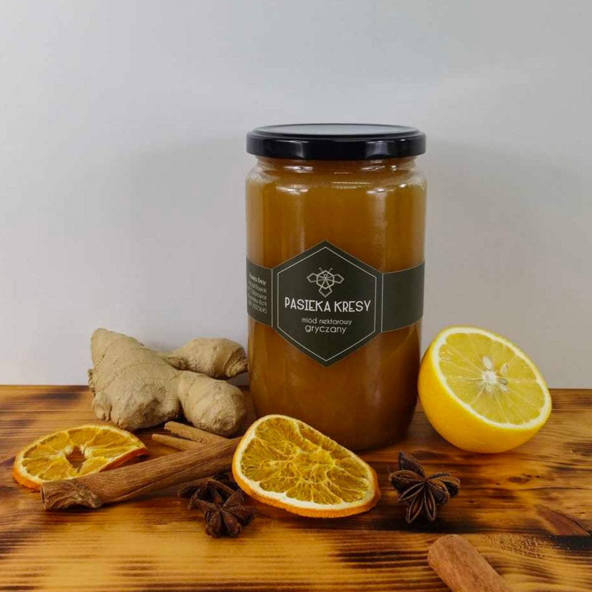 - Wygląd : Świeżo rozlany miód gryczany ma barwę od karmelowej do ciemnobrązowej. Z czasem podczas procesu krystalizacji jaśniej.